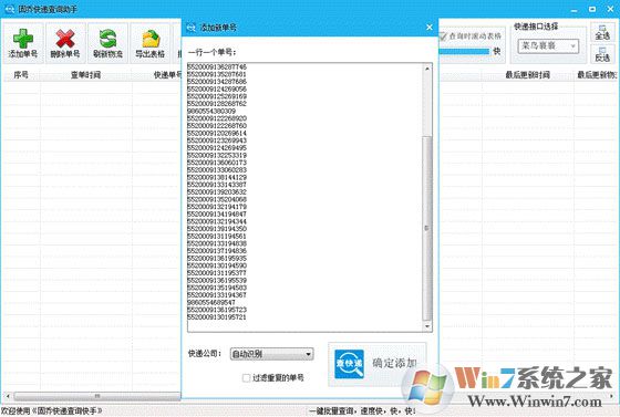 3、然后点击【添加单号】来添加要查询的快递单,软件自动识别快递单