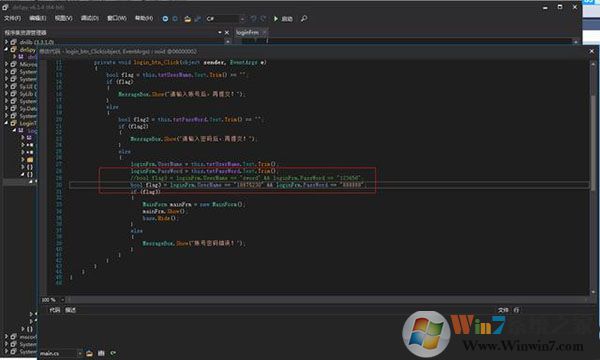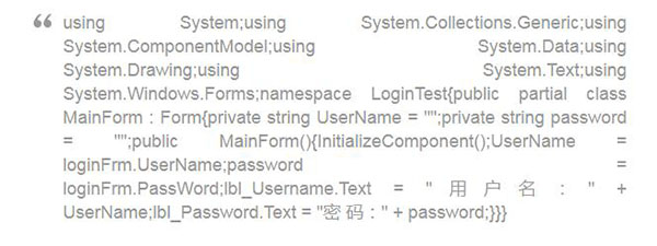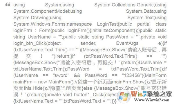 3、示例程序是编写一个winform的登录程序, LoginTest.exe,输入正确的账号密码之后,跳转到主界面,否则提示账号密码错误。