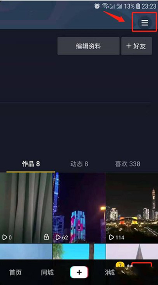 1、打开抖音,点击菜单“我”中右上角的“三横线”图标。