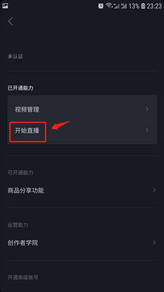 3、在已开通能力列表下点击“开始直播”,进入直播界面。