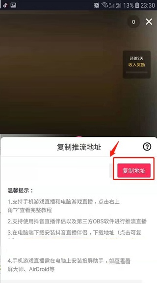 5、复制弹出的推流地址,然后在电脑上安装“抖音直播伴侣”。