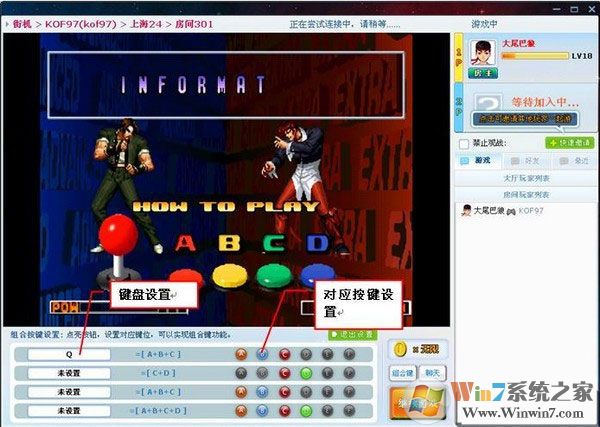 由于部分键盘不支持同时按下三个以上按键,因此有些复杂的招数无法使用,所以平台设立了组合键设定功能;点击设置界面左侧“组合键”手图标可进入组合键设置界面,组合键设置功能的使用方法是: