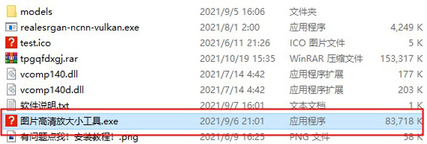 1、下载解压后获得软件,双击“图片高清放大小工具.exe”即可直接运行,
