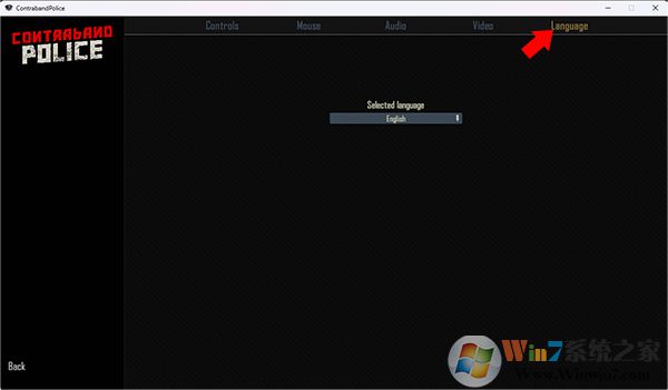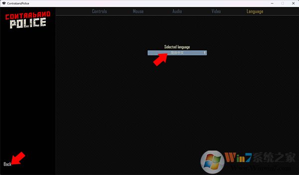 5、接着将Language改为简体中文并点击左下方的Back选项来保存更改,之后我们重启游戏即可将游戏语言改为简体中文