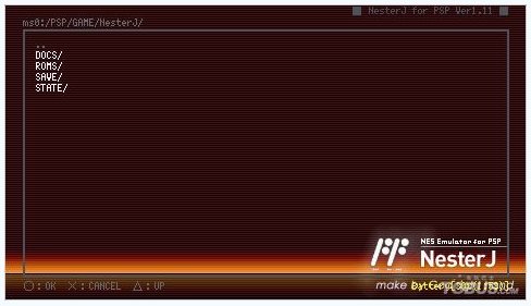 1.将压缩包解压,拷贝其中的“NesterJ”文件夹到PSP记忆棒中的“PSP\GAME”目录中。