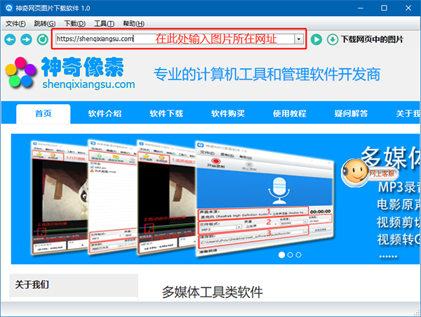 --网站下载照片1. 在下图红色框圈中的位置输入网页地址(此处以北京神奇像素科技有限公司官网为例),点击输入框后面的,跳转到该网页,加载完成后可以看到该网页内容;