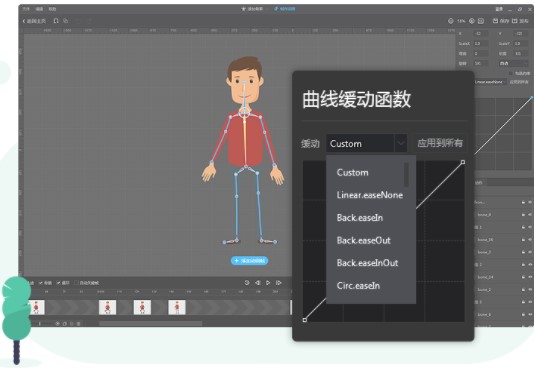 内置多种常用缓动函数,还可以根据需求自定义缓动函数,轻松改变角色动画中骨骼旋转和移动等运动的变化快慢。