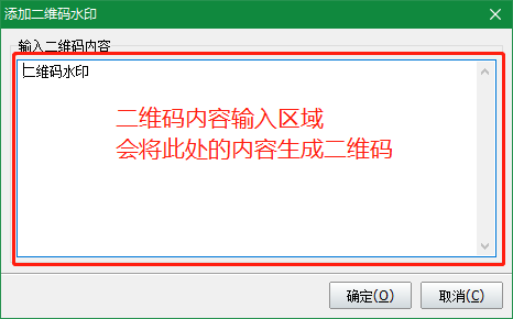 将二维码内容输入区域的内容修改为想要制作成二维码的内容,点击确定即可生成二维码,界面如下: