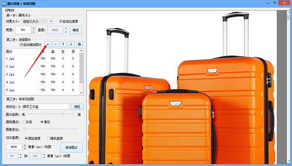 5、长图拼接切图:在左上角【工具】-【长图拼接切图】,可以将图片拼接成长图,也可以同时再重新切成短图。