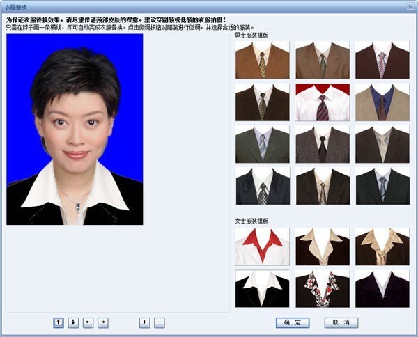 在实际证件照制作过程中,用户会遇到各种实际的需求。例如,在给某些单位拍摄证件照过程中,单位要求穿规定的职业装拍照,但是有的工却穿着休闲服装,怎么办呢?那么只有两种办法,要么让该员工换好职业装再来拍照,要么就是后期制作进行处理。我们只需要选择需要替换的服装,之后对服装进行拖动和缩放。就可以成功替换服装。
