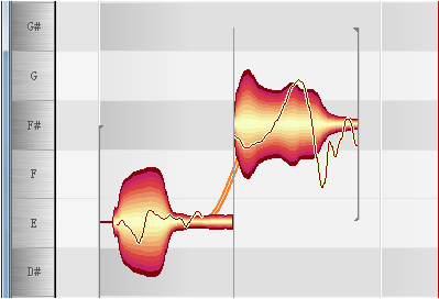 将每个音准确划分出后,即可通过绘制图线的方式(重新)绘制音高线。也就是说,通过绘制音高线的方式,可以计算出转音,滑音甚至是戏腔。这也是为什么麦乐迪大佬的翻唱一个字都不能信的最重要的原因原因。