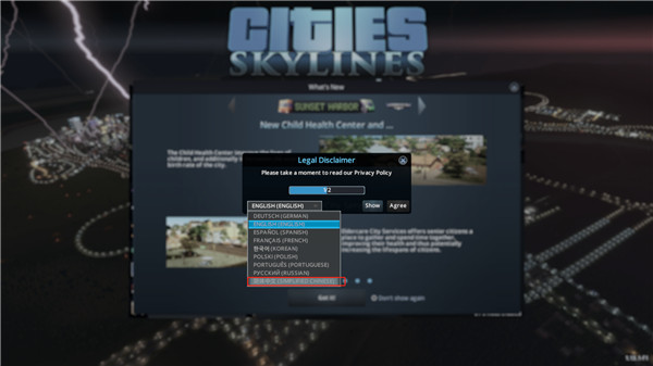 6、在桌面上打开游戏,在弹出的选项中选择简体中文语言;