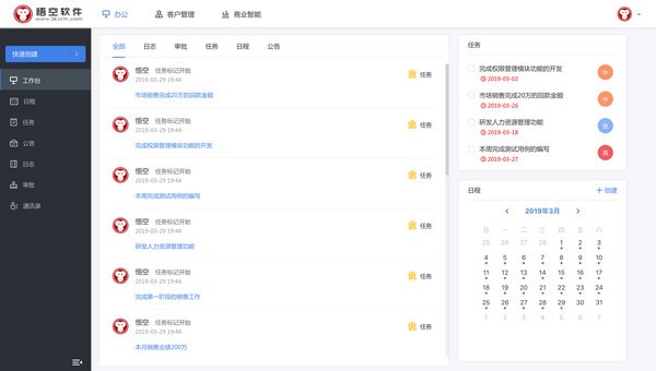 悟空CRM管理的不仅是客户,还对员工的任务进行明确划分,能够记录员工的日常工作,形成操作日志,让管理者清晰了解员工的工作状态;管理者可以自定义设置操作权限,方便管理层查看工作进度和工作情况,在科学管理客户的同时实现企业内部的高效管理。