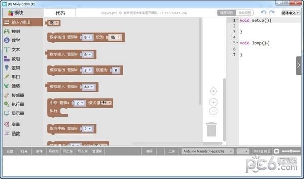 程序上载:用户可以通过Mixly直接上载程序,支持直接上传程序,无需编译。