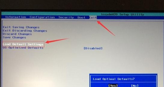 3、在选择Load Default Settings回车加载设置,加载默认设置之后,部分机型需要先按F10保存重启再按F2进入BIOS继续下面的设置;