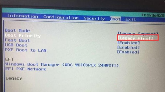 5、再把Boot Priority设置成Legacy First,按F10弹出窗口选择yes回车;