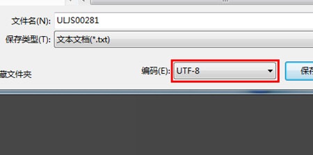 4、最后另存为,注意是另存为,而不是保存。同时保存的编码选择为【UTF-8格式】不然在模拟器中,会显示乱码。