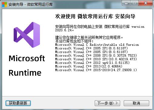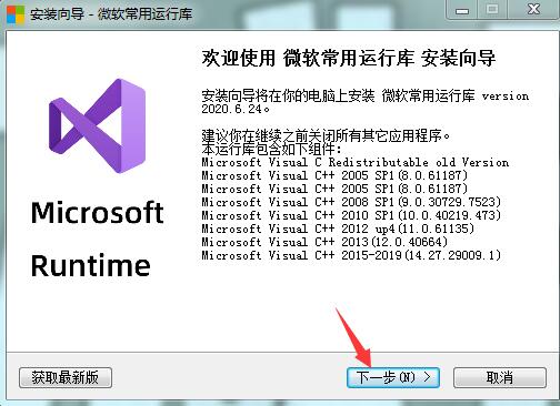 2、然后双击MSVBCRTAIO_v2020.06.24.exe应用程序进入安装向导;