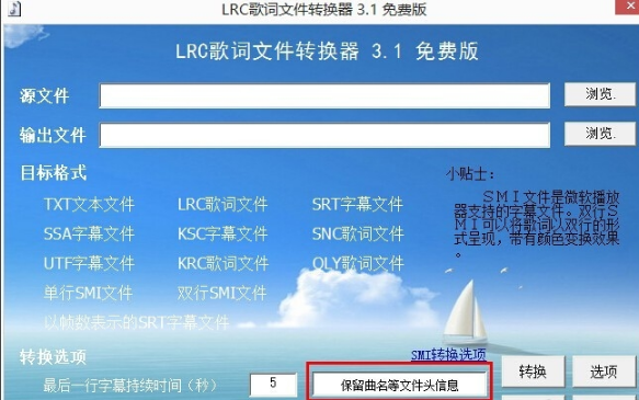 LRC歌词文件转换器能将lrc文件内的歌词重新排序,像显示歌词的软件一样按实际顺序将歌词输出。并软件全面支持LRC、SRT、SSA、KSC、SMI、UTF、SNC、KRC、QLY、TXT等10种歌词字幕格式,是您处理歌词字幕的最佳助手。软件完全绿色,不含广告和插件,不修改注册表,不建立文件关联,不注册后台服务和组件。且可以完成LRC、SMI、SRT、SSA、 KSC、txt文件的互相转换。还可以进行LRC、SRT制作、LRC同步显示、LRC双行合一、LRC歌词拆分、多个LRC合并为TXT。该软件为绿色软件,小巧方便。