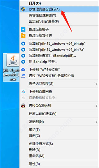 1、鼠标右击jdk15.0.1 64位官方版软件,选择【以管理员身份运行】;