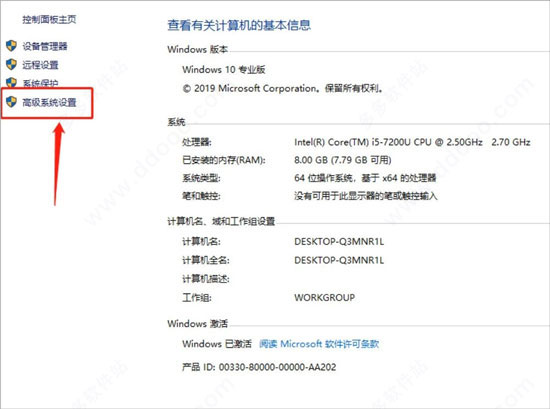 2、选择【高级系统设置】;