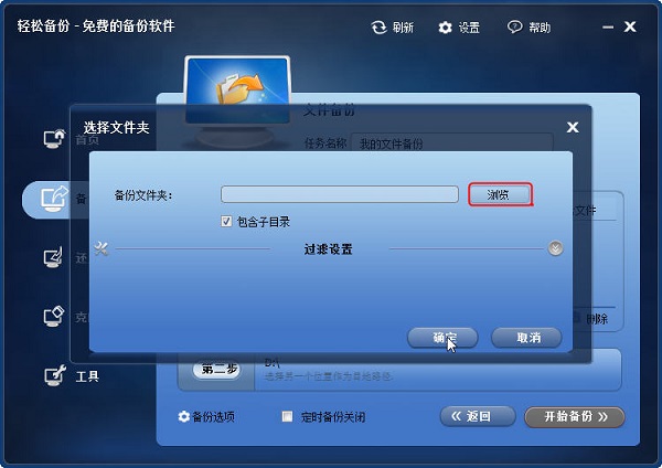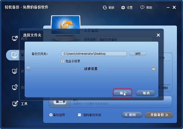 ⑥当你把所有都设置好后,点击“开始备份”来执行此操作