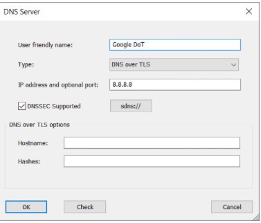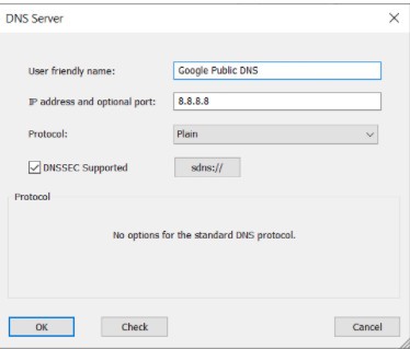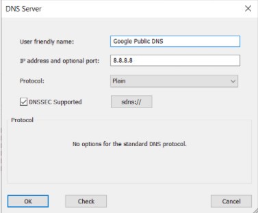 可用参数取决于所选协议。上面的例子是谷歌公共DNS(普通协议)。