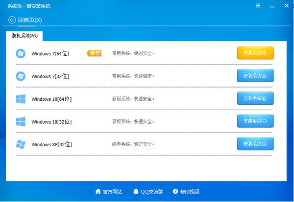 内置WinXP、Win7(32/64位)、Win10(32/64位)供用户选择安装,大大提高了重装系统的可选择性和灵活性。