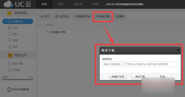 本地下载是一种下载工具,用于网络服务器代替客户到目的网站下载文件,并将其存储在UC网盘中。