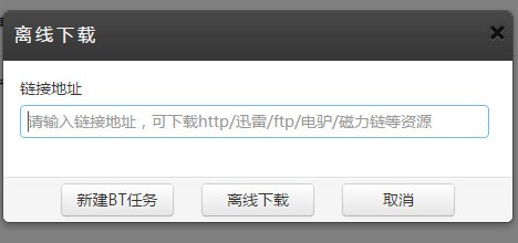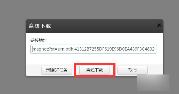 5、返回“离线下载”界面,粘贴对应的磁 力链接地址,点击“离线下载”按钮即可下载对应的磁 力资源。或者点击“新建BT任务”按钮通过BT种子下载对应的资源文件,如下图所示: