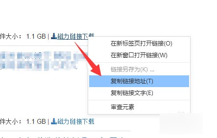 4、我们需要获取Bt种子或磁 力链接地址:通常在磁 力链接下载页面中,通过右击对应的“磁 力链接下载”,从其右键菜单中选择“复制链接地址”项即可,如下图所示: