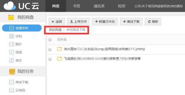 8、待对应的离线任务添加到网盘成功后,切换到“全部文件”-“来自离线下载”目录中,就可以查看已下载完成的文件,如下图所示:
