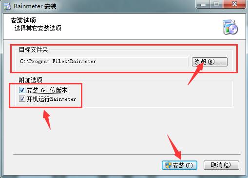 5、点击“浏览”选择目标文件夹的路径,在附加选择中可按用户的需求自行选择,最后点击“安装”;