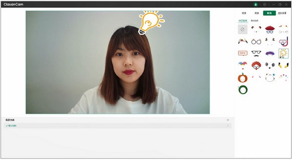ClassInCam是一款独立的虚拟摄像头软件,具有美颜、贴纸和虚拟背景等功能,用户可登录ClassIn 账户自定义常用的场景设置,切换场景更便捷,赋于课堂新面貌。