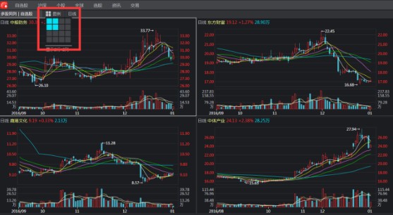 点击图中红色方框所示的区域,可以选择一次同列多少只股票,目前只支持4、6、9三个数量的同列,后续会增加更多排列组合。