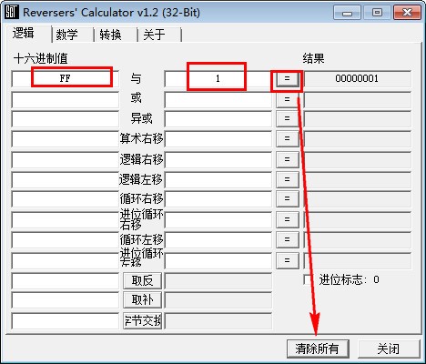 如果你需要进行逻辑值得换算,只要打开软件选择你要计算方法,输入你想要计算的十六进制值点“=”号就会有结果了