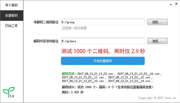 目前批量解码支持一级子目录,并且会以目录名创建文件保存解码内容,如果你的解码任务较多(并且电脑配置较好)可以多开几个程序试试