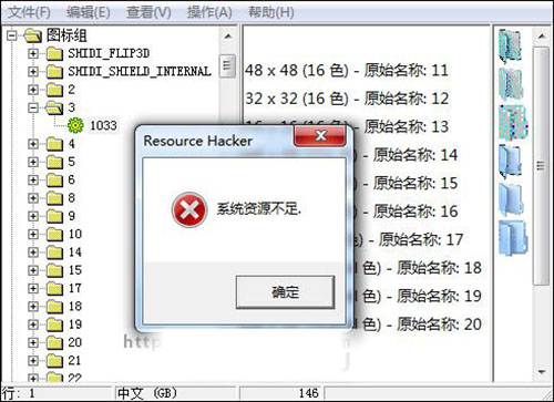 刚才途中出现了一个错误的提示窗口这里说下,该错误提示可能是由于图标ico文件了面包含了压缩的256px图标信息导致的,我们要是替换不包含压缩256px的图标就不会出现这类提示。还好该提示不影响结果,修改好后文件还是成功的。