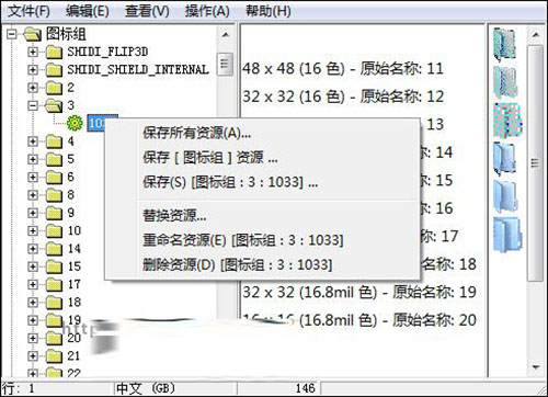 8、开始进行替换图标了哦,在选中了"1033"后,右键"1033",就会出现右键菜单