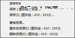 2. 提取 (保存) 资源到文件 (*.res) 格式,作为二进制,或作为反编过的译资源脚本或图像。图标,位图,指针,菜单,对话,字符串表,消息表,加速器,Borland 窗体和版本信息资源都可以被完整地反编译为他们各自的格式,不论是作为图像或 *.rc 文本文件。