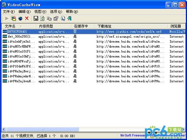 VideoCacheView自动扫描Internet Explorer和基于Mozilla的网络浏览器(包括FireFox)的整个缓存,查找当前存储于其中的所有视频文件。它能让您很容易地复制缓存的视频文件或其它目录以便将来进行播放和观看。如果您有一个关联了flv文件的视频播放器,您还可直接播放缓存中的视频文件。