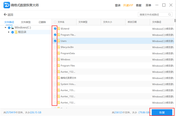 最后,选择需要恢复的数据,再点击“恢复”按钮即可完成恢复操作。