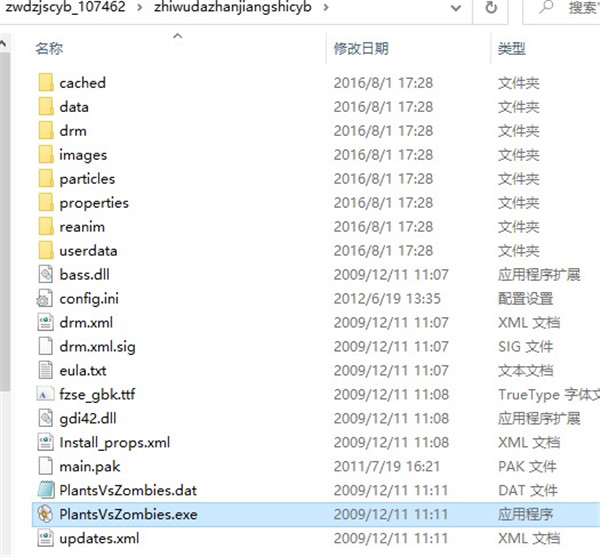 2、双击PlantsVsZombies.exe运行游戏