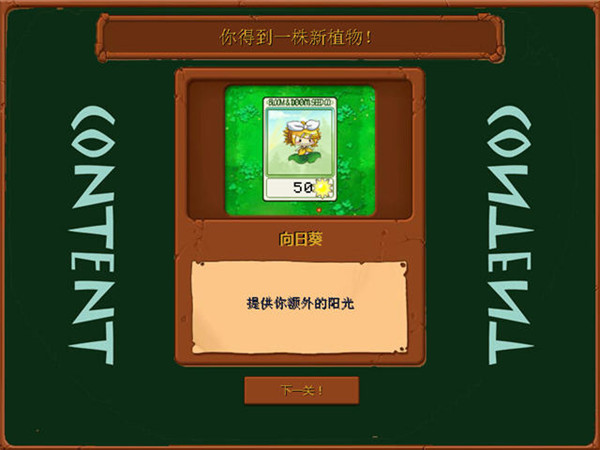 6、成功通过关卡之后,将会获得新植物,以此进入下一关