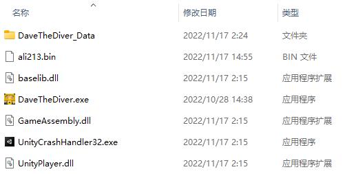 2、进入游戏文件夹,如图所示双击“DaveTheDiver.exe”程序即可打开游戏;