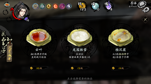 茶坊:可购买饮子,在战斗开始时使用,只在本盘有效