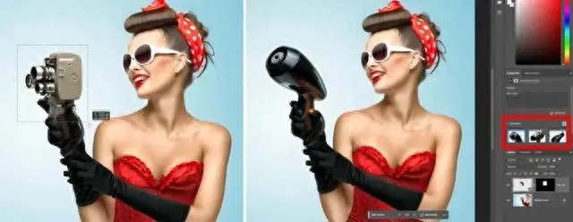 比如,应用于红裙模特手上的产品进行快速变更,毫无PS痕迹!