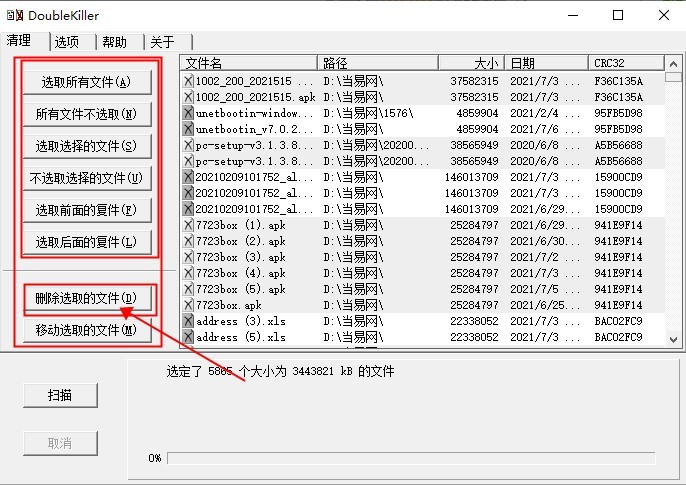 这个软件可以帮助你轻松快速地找到相同的文件。它还可以搜索文件名称、尺寸、创建时间或CRC32校检值。适用于搜索不同控制器的特定类别的重复文件。搜索后,Doublekiler可以让你批量选择是移动还是删除它找到的相同文档,方便易用。