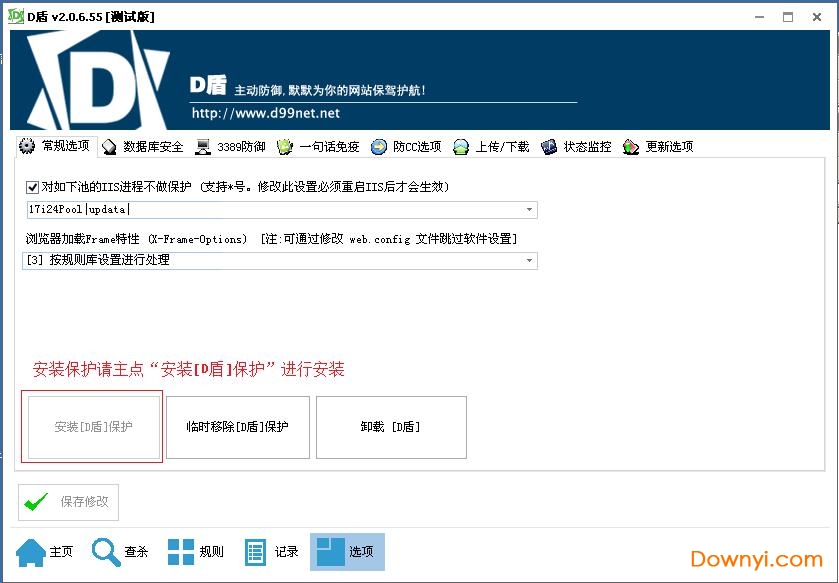 D盾是一款专门为Windows Server IIS服务器提供的防火墙软件,专业的网站防护软件,它可以避免你的服务器被入侵,一款主动防御的保护软件,以内外保护的方式 防止网站和服务器给入侵,在正常运行各类网站的情 况下,越少的功能,服务器越安全的理念而设计! 限制了常见的入侵方法,让服务器更安全!