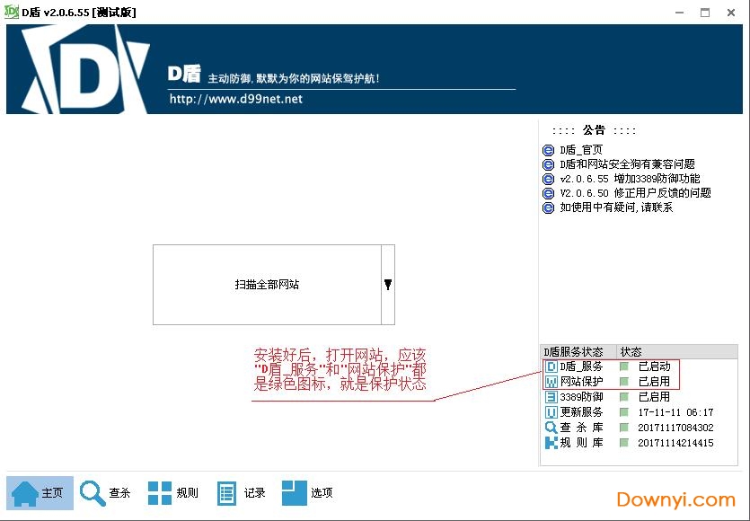 请解压全部文件到指定目录,如c盘或d盘 例如:d:\d_safe 之后运行 "d_safe_manage.exe" d盾程序,如果你的是iis网站环境,请点击“选项”页里点击按钮“安装[d盾]保护”,进行安装,安装时需要管理员权限.如果你的电脑不是iis的网站环境,无需安装保护,可当web查杀软件使用。